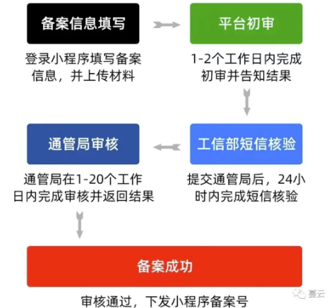 提交小程序备案信息后,平台将会在1-2个工作日内完成初审(具体请以实际审核时间为准),审核结果将以站内信、消息等形式通知管理员。