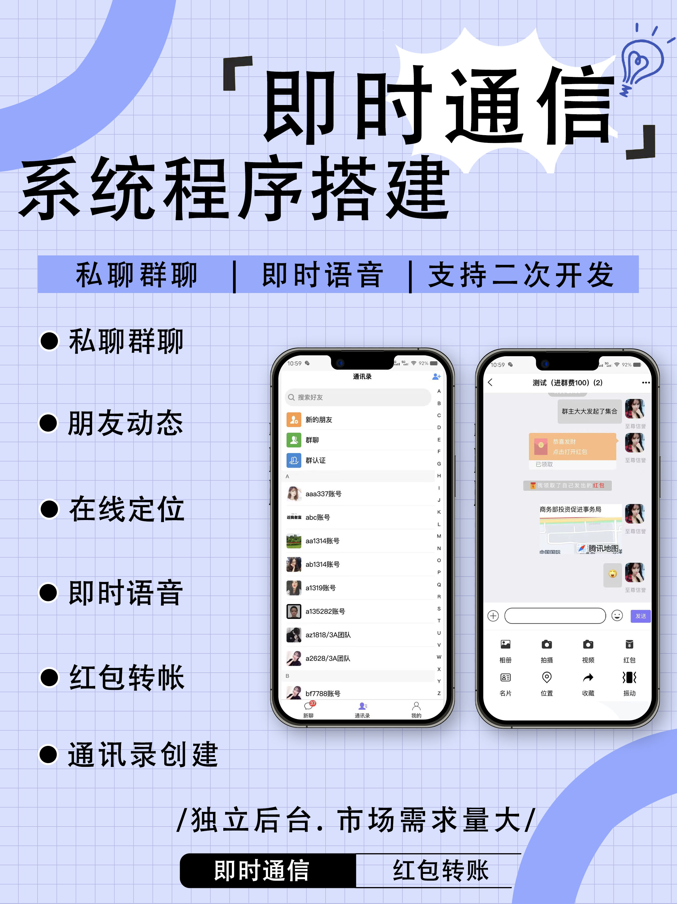 即时通讯小程序开发案例,可H5源码搭建 小程序开发,软件开发,网页开发app开发定制。价格优惠,大佬带队,价格实惠后台强大,专业定制