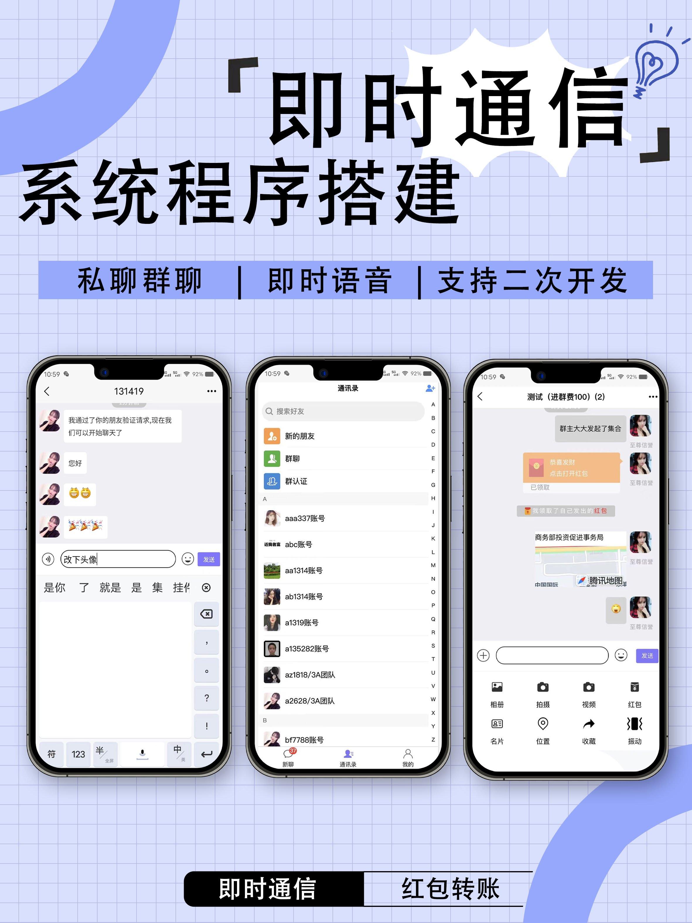 即时通讯小程序开发案例,可H5源码搭建 小程序开发,软件开发,网页开发app开发定制。价格优惠,大佬带队,价格实惠后台强大,专业定制