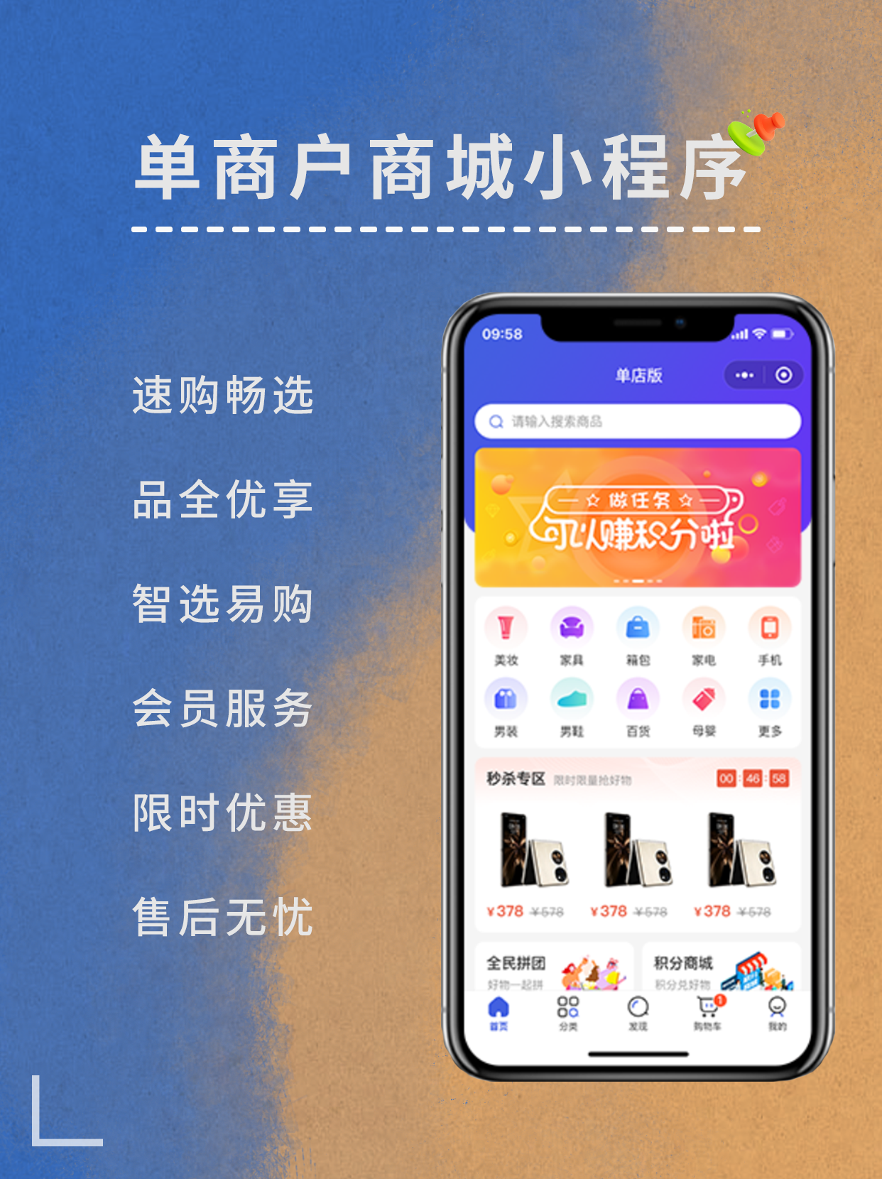 无需复杂的编程知识,无需高昂的开发成本,我们的单商户电商小程序提供从设计、搭建到运营的一站式服务。简洁的操作界面,让您轻松上传商品信息、设置促销活动、管理订单与库存,一切尽在指尖掌控。无论是时尚服饰、精致家居,还是美食特产,都能在这里找到最适合的展示方式,吸引顾客的目光。